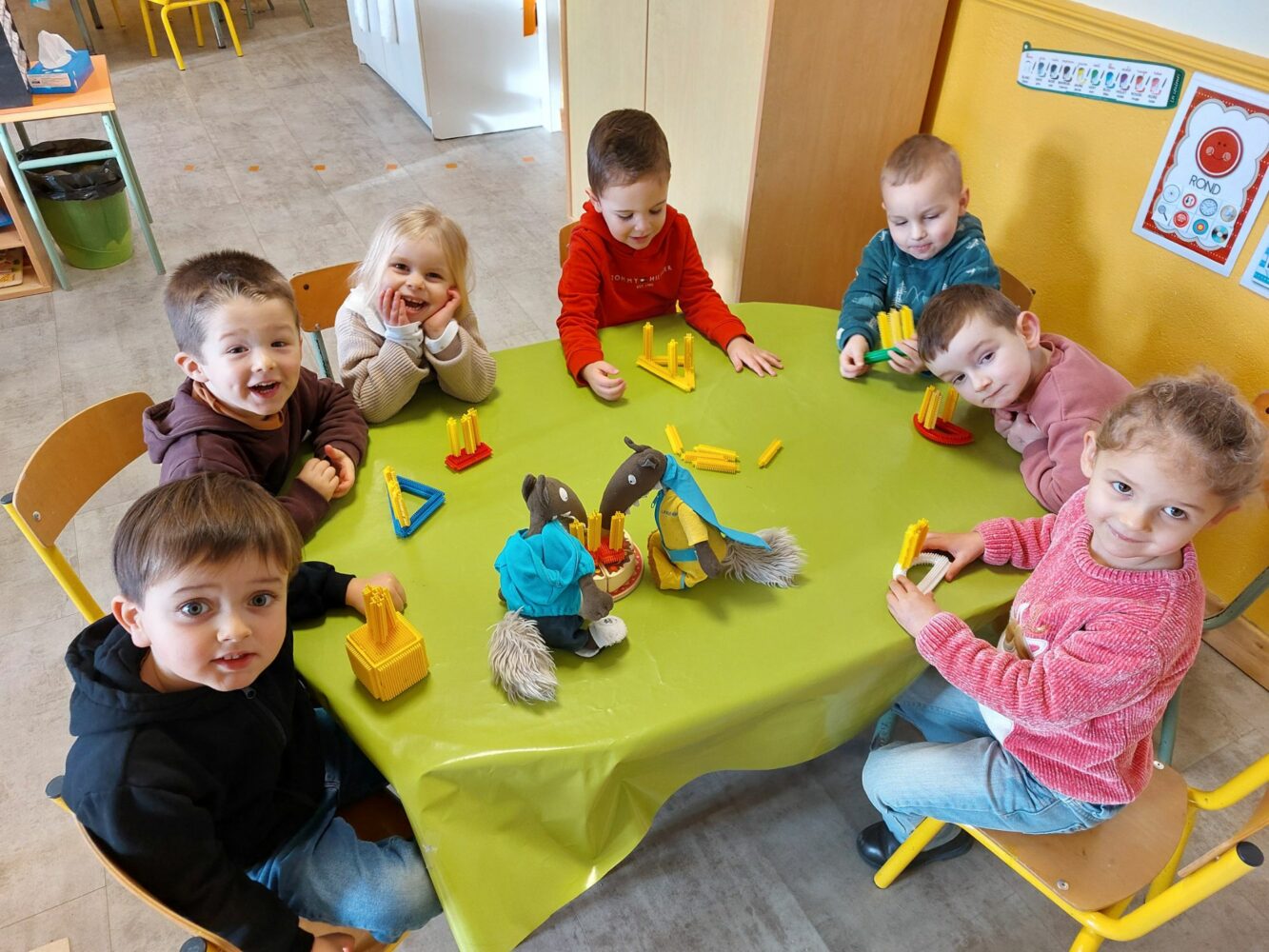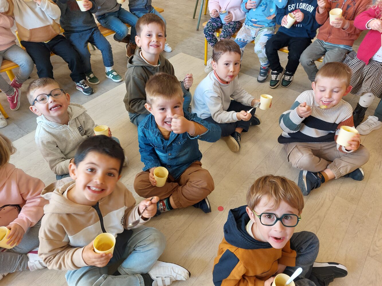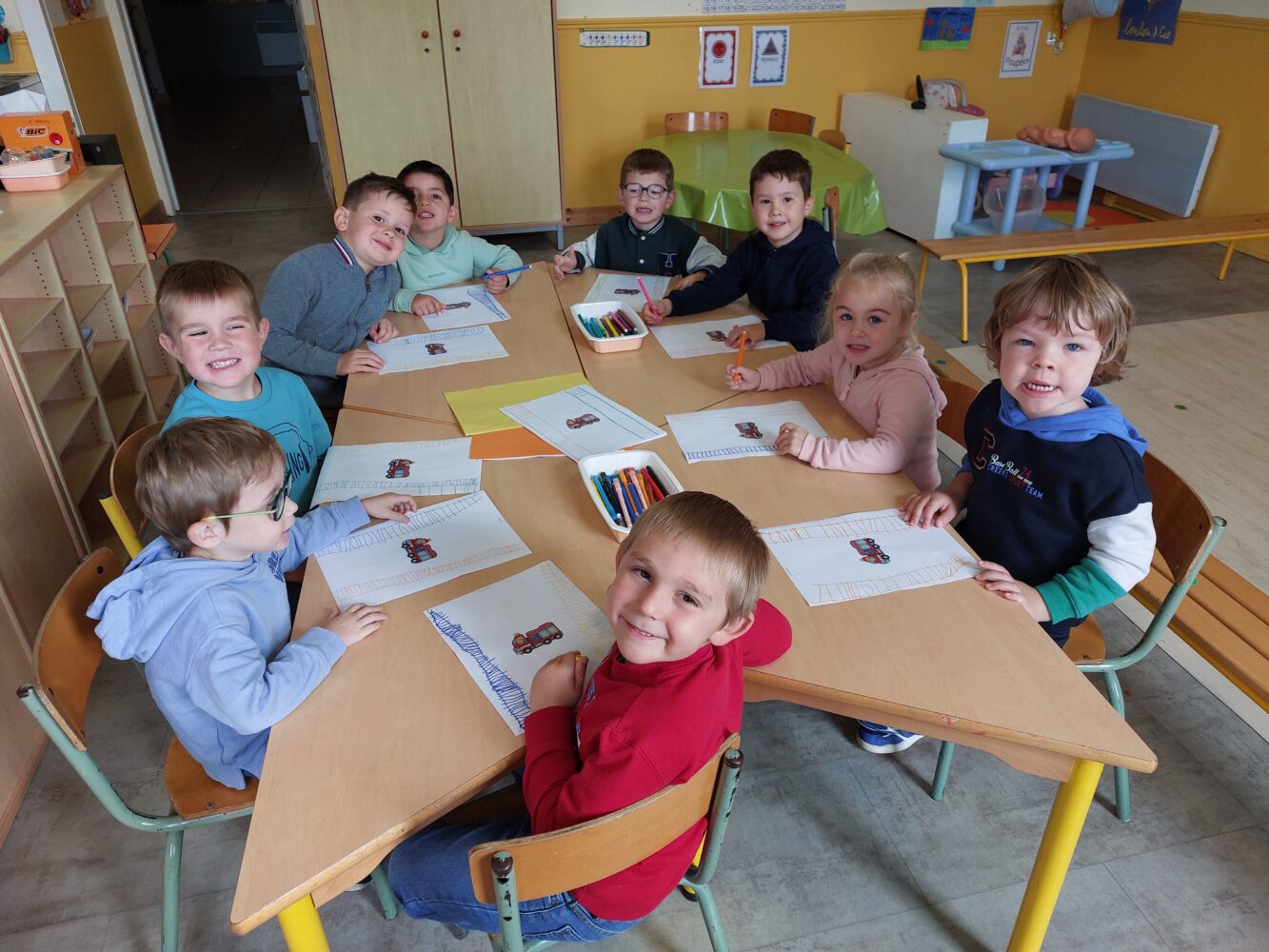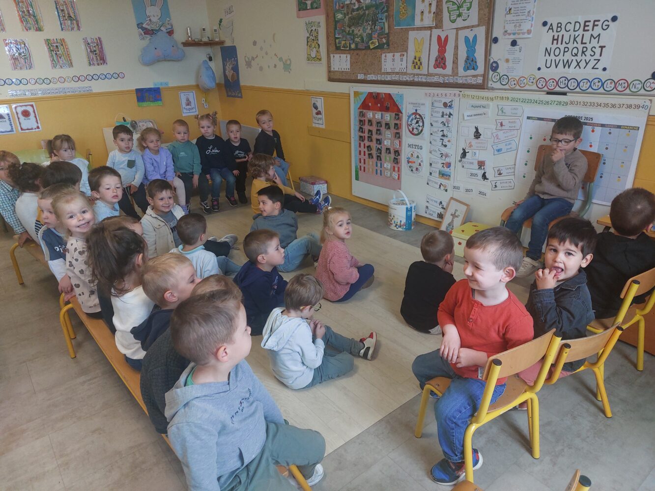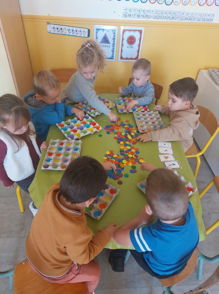 Dans notre classe, il y a 11 MS, 9 PS et 1 TPS. D’autres copains et copines nous rejoindront après les vacances de Noël et de Pâques.